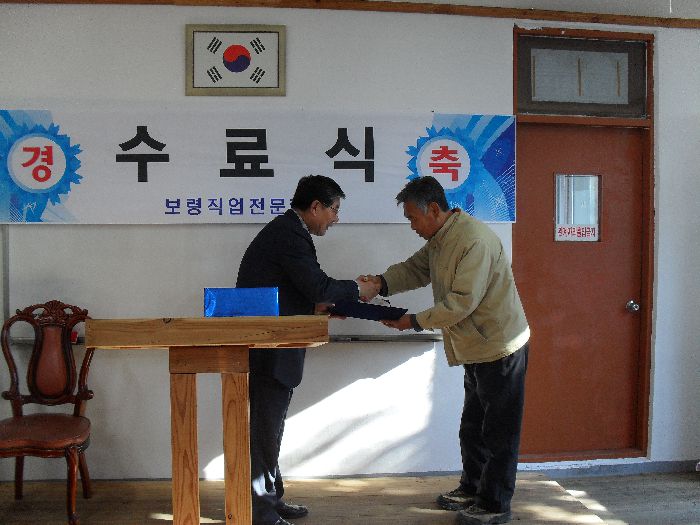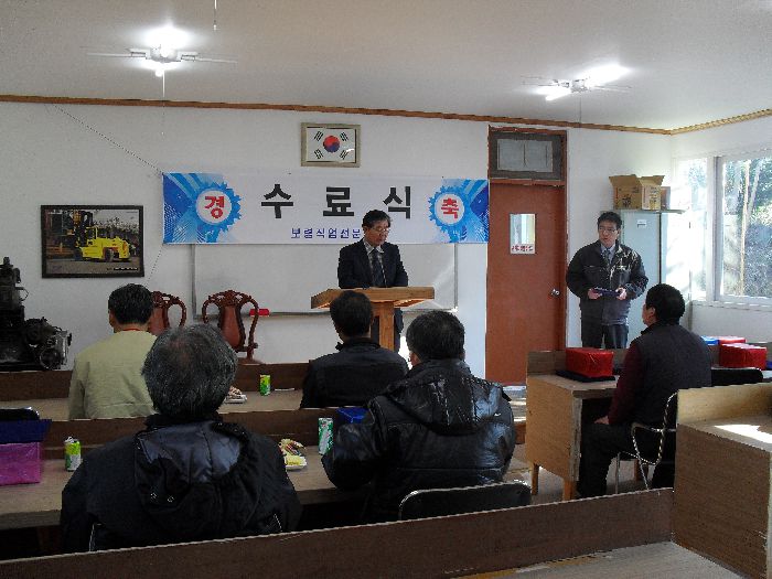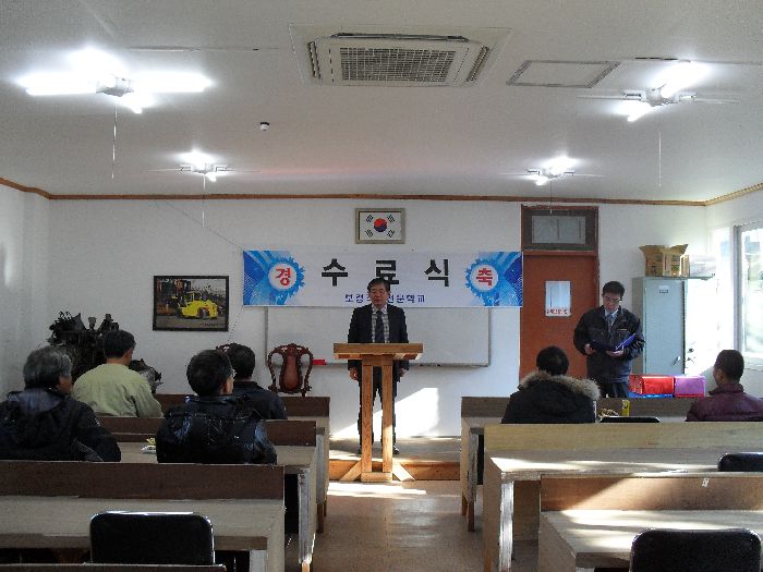 굴삭기 2기 수료식 장면입니다.
